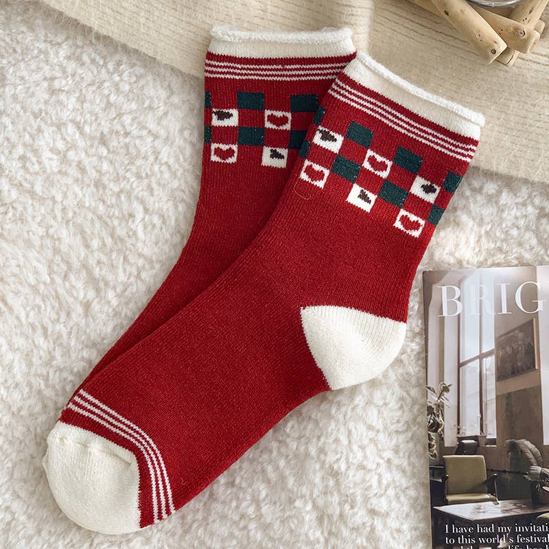 Material: 90% polyester fiber Suitable Season: Winter Packaging: Transparent OPP bag Size: One size Step into the holiday season with these Christmas socks featuring charming festive patterns. From snowmen and Christmas trees to heart and checkered designs, these socks blend retro style with cozy comfort. Crafted with soft material, they’re perfect for adding a festive touch to your winter outfits, keeping your feet warm, and embracing the holiday spirit. Ideal for everyday wear or as a sweet seasonal gift, these socks bring both style and cheer to the colder months.