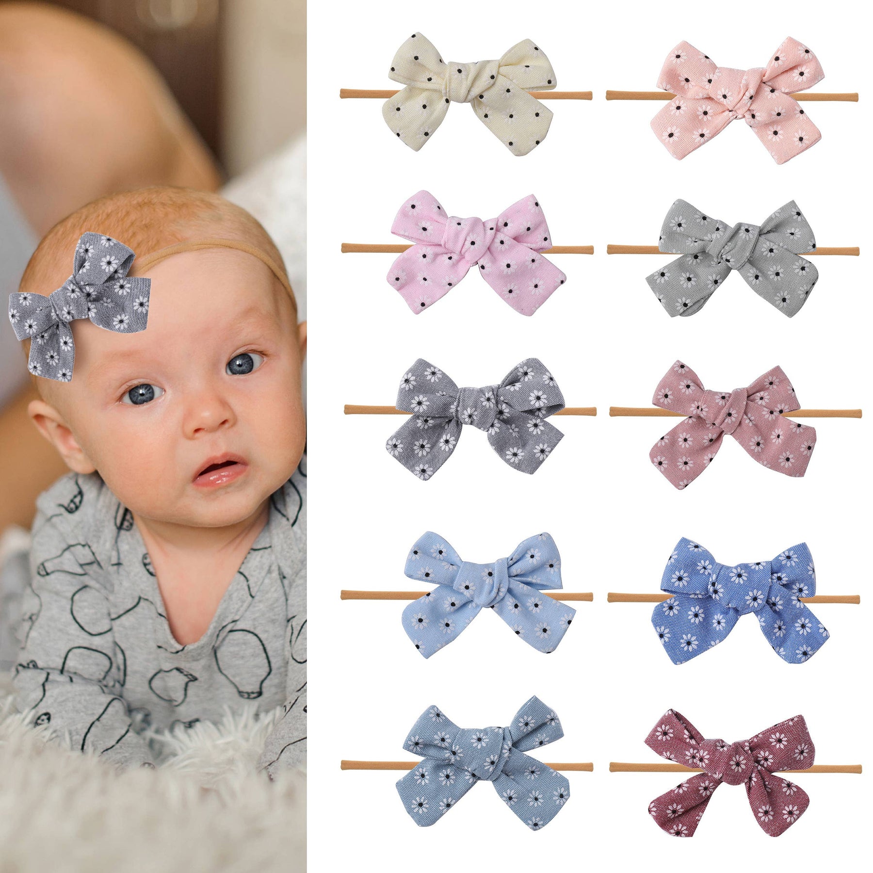 Nylon Newborn Baby Girl Headbands 10 Pcs Set Linen Floral