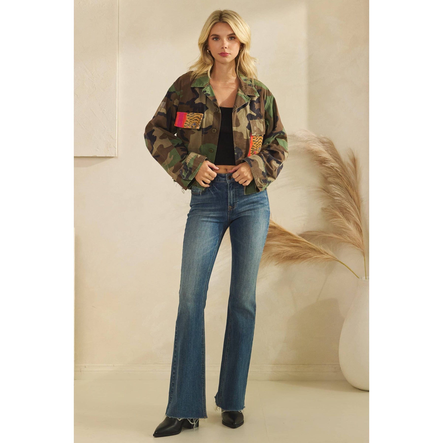 Camo jacket with Tiger Print contrast: Camo / L