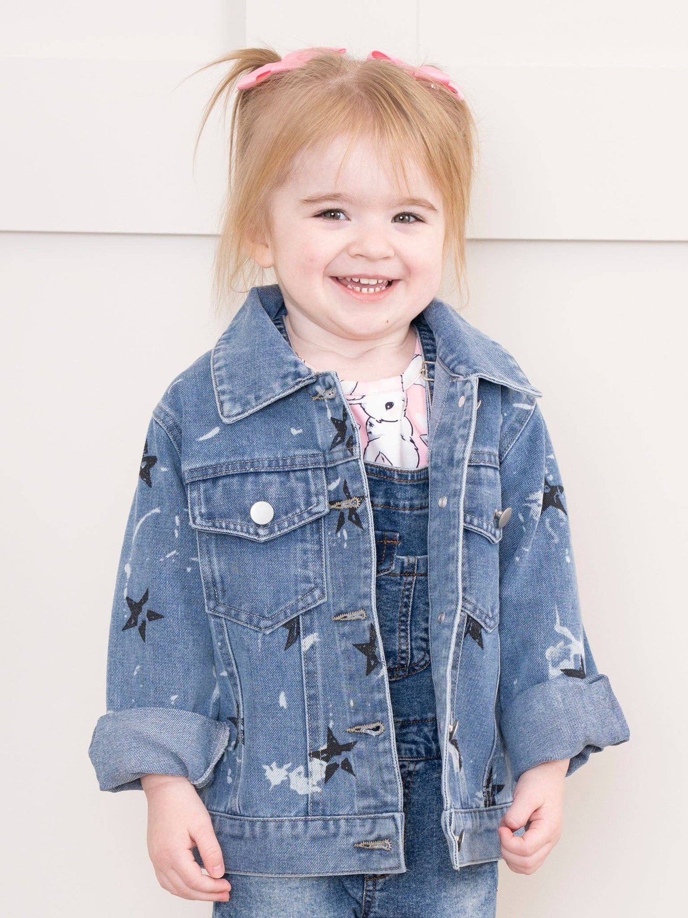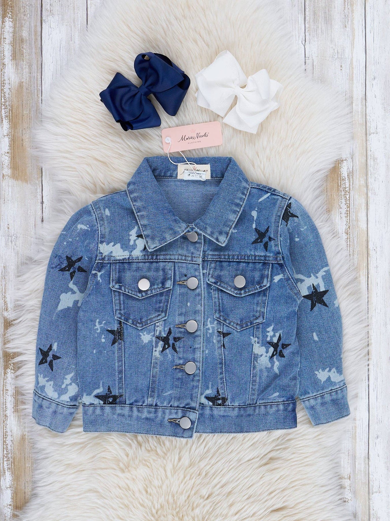 Introducing our Superstar Denim Jacket – the must-have for your little trendsetter! 🌟💙 With a cool and versatile design, this jacket adds a touch of star power to any outfit. Let your little one shine bright and show off their superstar style in this denim classic! * Fits true to size. * 84.2% Cotton / 10.3% Viscose / 5.5% Polyester * Accessories sold separately. * Suggested bow color:s #1 and #17. * Import. *Returns and cancellation policy located at bottom of page* *Sold out of the size you need? Sign up for restock notifications by clicking the size you need and then "Notify Me When Restocked."