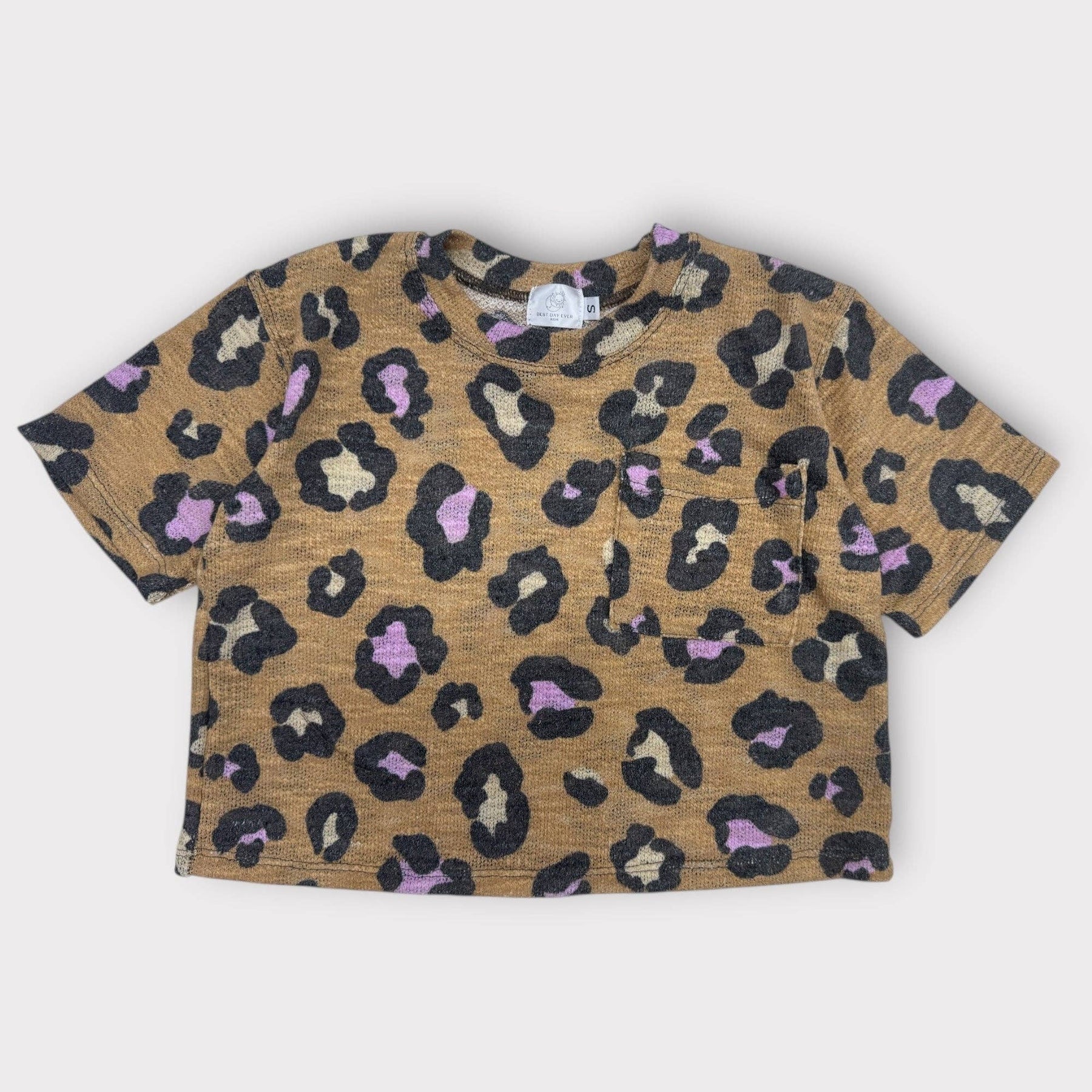 Kids Lazy Leopard Pocket Tee – Boxy Knit: L (5-6yr)