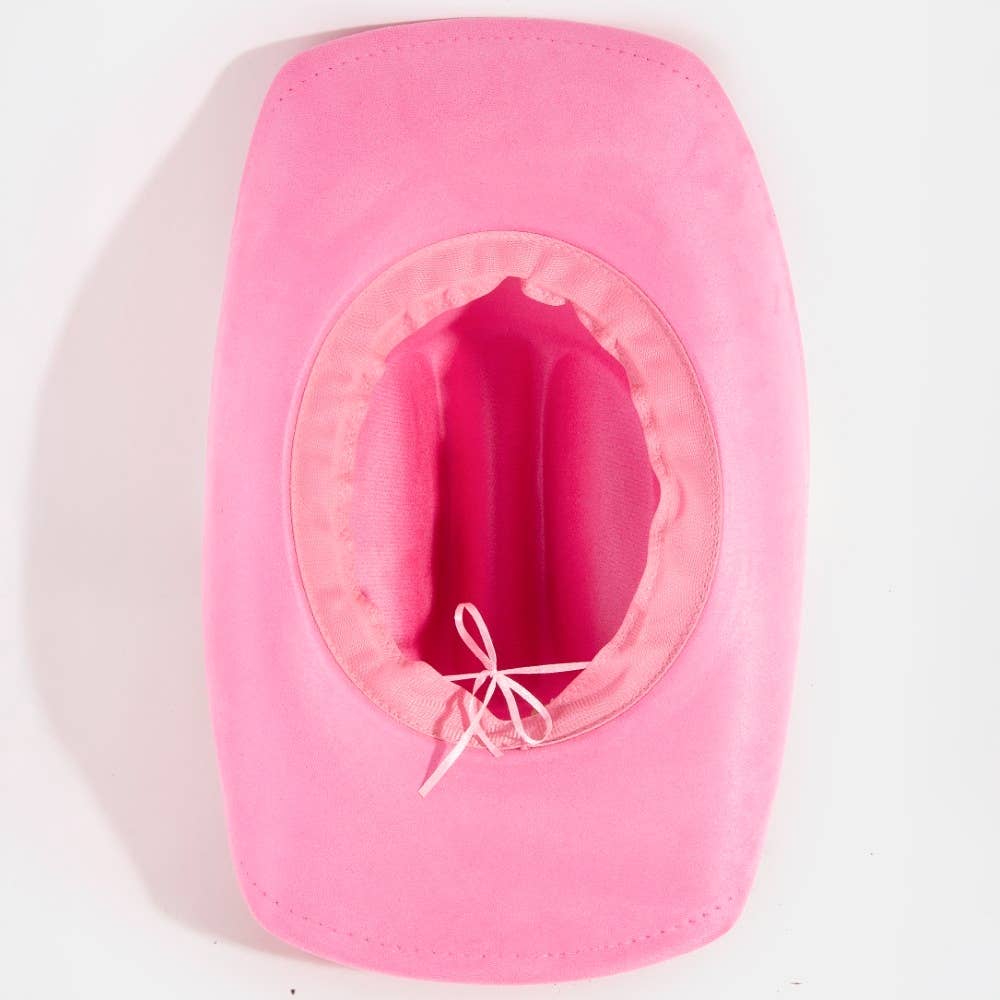 This cowboy hat displays a fashionable solid color western style. Experience a subtle blend of modernity and classic charm as this cowboy hat effortlessly adorns your ensemble. 100% POLYESTER