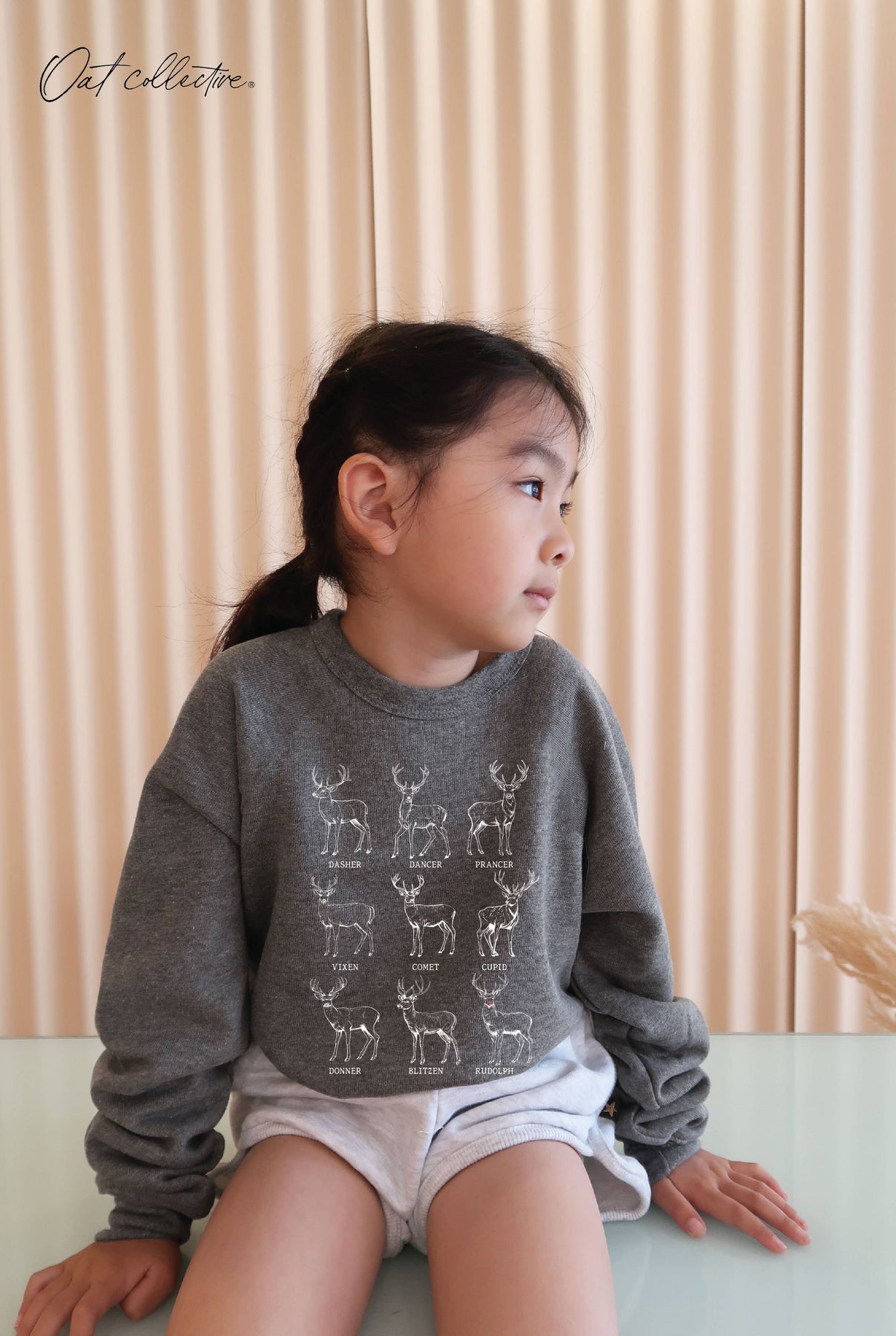 SANTA'S REINDEER Toddler Unisex Graphic Sweatshirt 🤍 Crafted from 100% Premium Cotton Jersey. 🤍 Model is 5 years old, wearing size 5T. 🤍 Designed with a relaxed unisex fit. 🤍 Features ribbed cuffs and waistband for a snug, cozy fit. 🤍 Each piece is hand-printed with High Quality Ink. 🤍 Crafted from ultra-soft Airlume combed and ring-spun cotton fleece Fabrication for all-day comfort. 🤍 Fabric content: Solid colors:50% Cotton / 50% Polyester Heathered colors:50% Polyester / 42% Cotton / 8% Rayon Exclusive Oat Collective Main Label. 🤍 Category-CHRISTMAS