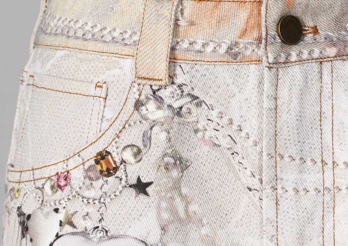 PT28 Retro Chain Print Loose Wide-Leg Dopamine Jeans: Color as pictures / English / M