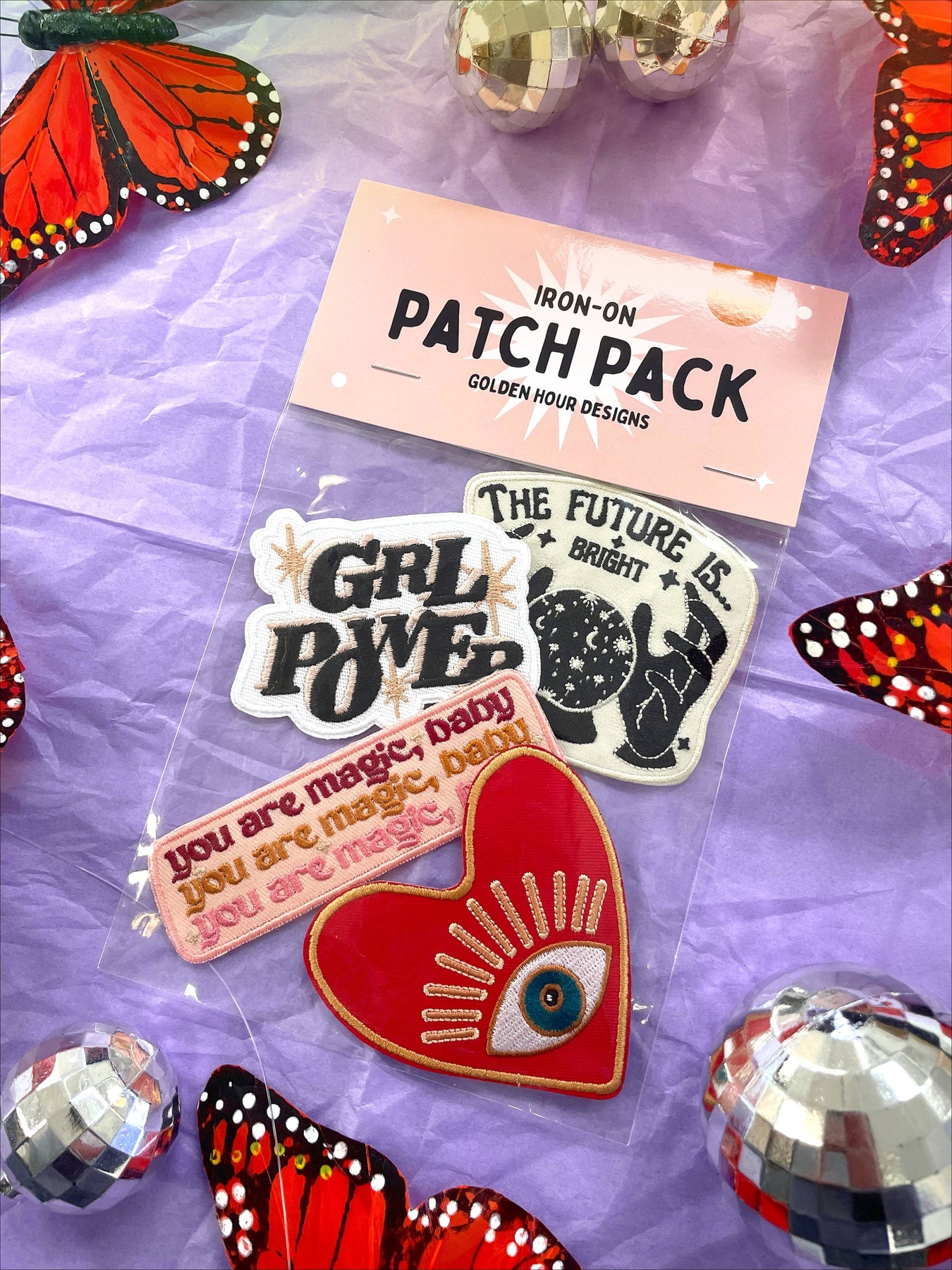 Iron-on patches are finally here. This one was designed to resemble one of our core pairs of earrings from our Signature Collection; the Protection earrings. Easily ironed or sewn onto purses, bags, fanny packs, denim, or any of your favorite accessories! Please see customization instructions for packaging options. Measurements: 3 x 3 in.